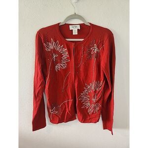 Bob Mackie Wearable Art Cardigan M Orange Red Embroidery Beads