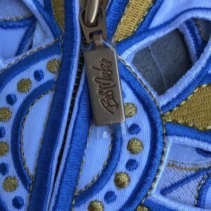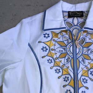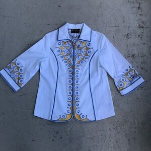This jacket is new without tags. Plastic Is still on the zipper pull. 97% cotton. Great for summer’s night out owl
