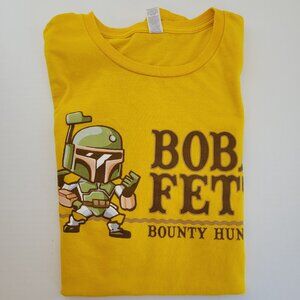 Boba Fett T-Shirt Men's XL Yellow Bounty Hunter Star Wars 100% Cotton Crew Neck