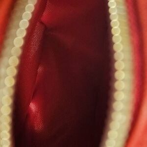2️⃣ Red Zippered Cosmetic Wristlet Bag with Strap