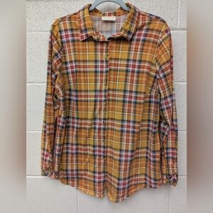 Bobbie Brooks 1X plus flannel look button down shirt in mustard