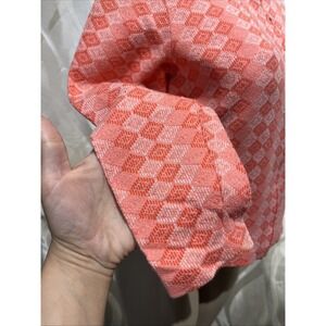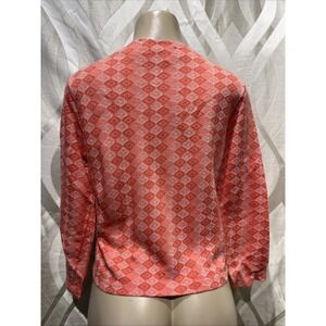 Bobbie Brooks 60s Collarless Orange Diamond Print Kastle Knit Full Zip Cardigan