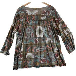 Bobbie Brooks Boho Peasant Blouse Women Plus 2X Floral Paisley Hippie Whimsigoth