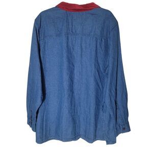 Bobbie Brooks Christmas Print Chambray Blouse Women's Size 26W Blue Red Holiday
