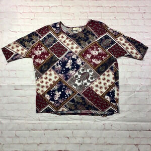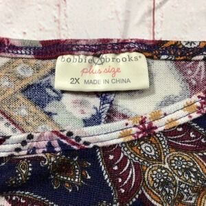 Bobbie Brooks colorful short sleeve crew neck top. Size 2X. This top is so incredibly soft! It will instantly become a favorite piece in your wardrobe. Made of a polyester / spandex blend so it does have some stretch to it. Machine washable. Great condition. No rips, holes or stains. Smoke free home.