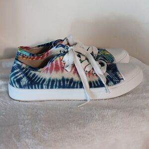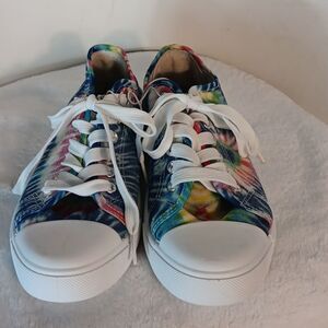 Vibrant New without tags tie-dye sneakers with white laces and soles. Size 6. Perfect for casual wear.
