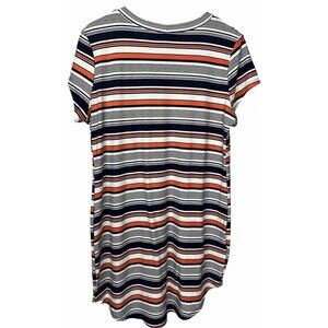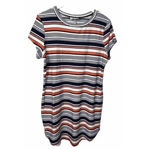 Bobbie Brooks Dress Short Sleeve Round Neck T-Shirt Mini Striped Blue White Orange Rounded Hemline Pullover