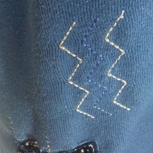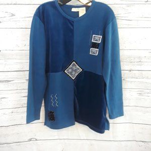 Bobbie Brooks Knit & Velvet Embroidered Tunic Top Blue Women's L WS110
