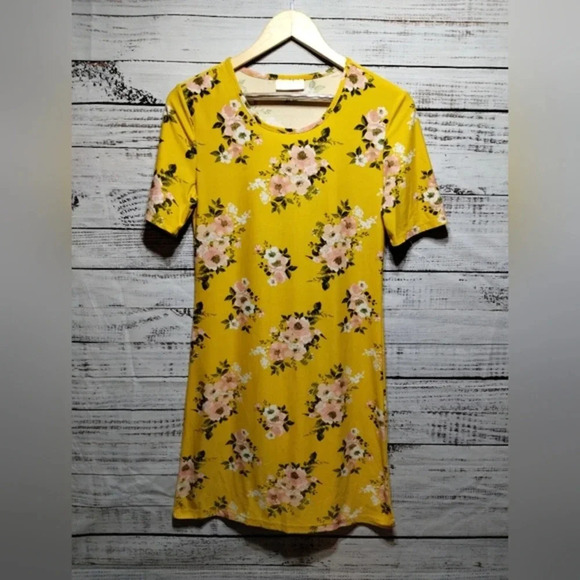 Bobbie Brooks Floral Shift Dress Yellow size Small Summer Spring Lightweight