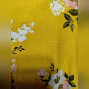 This Women's Small Bobbie Brooks Floral Mini Dress in Yellow has minor pilling but features a beautiful floral design all over. It is soft, lightweight, and the perfect color for transitioning from spring to summer.