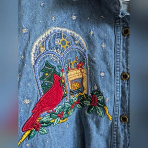Bobbie Brooks Holiday Denim Shirt size 22 24 3X Button Down Cardinals Christmas