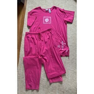 Bobbie Brooks Hot Pink Pajamas Set 18/20W Comfy Princess Good Vibes