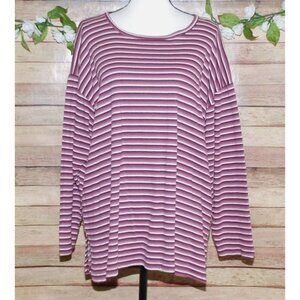 Bobbie Brooks Ladies Knit Shirt Top Size XL Purple Striped Long Sleeve Henley St