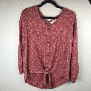 Bobbie Brooks Ladies Red Speckled Marled Knit Top Shirt Large