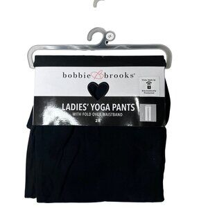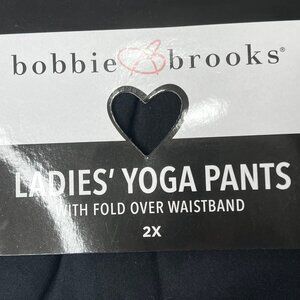 Bobbie Brooks Ladies Yoga Pants 2X Black Fold Over Waistband 2 Packages NWT