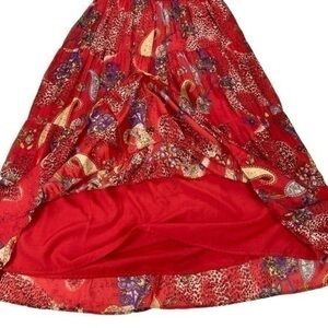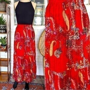 Bobbie Brooks Maxi Skirt Womens Sz 1X Red Tiered Vintage Bohemian Elastic Waist
