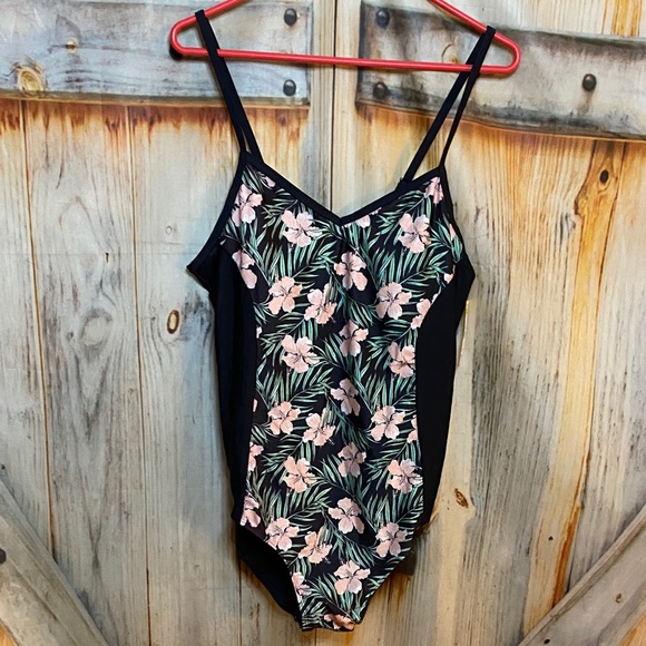 Bobbie Brooks NWT Floral Print One-Piece Swimsuit Padded Bra Adjustable Straps