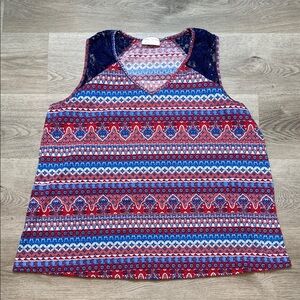Bobbie Brooks Patterned Sleeveless Top - Red & Blue Lace Straps Women’s 1X