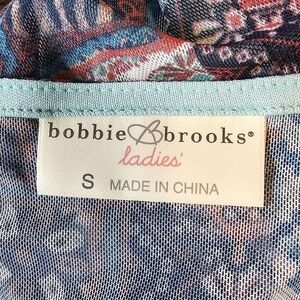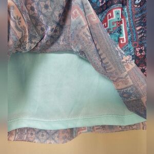 Bobbie Brooks Sheer Yoke Aqua Blue Pink Mesh Sleeveless Boho Blouse