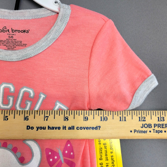 The Bobbie Brooks Sleepwear Pj Set in pink with a graphic Dino print is a cute and comfortable option for girls in sizes 5-6.