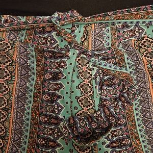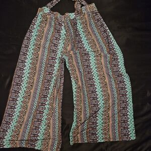 Stylish wide-leg pants with a vibrant teal and black pattern. Perfect for casual outings. Comfortable and chic design. Fits more like an xl than anything I'm just to tall shirt comes with would be a cute outfit