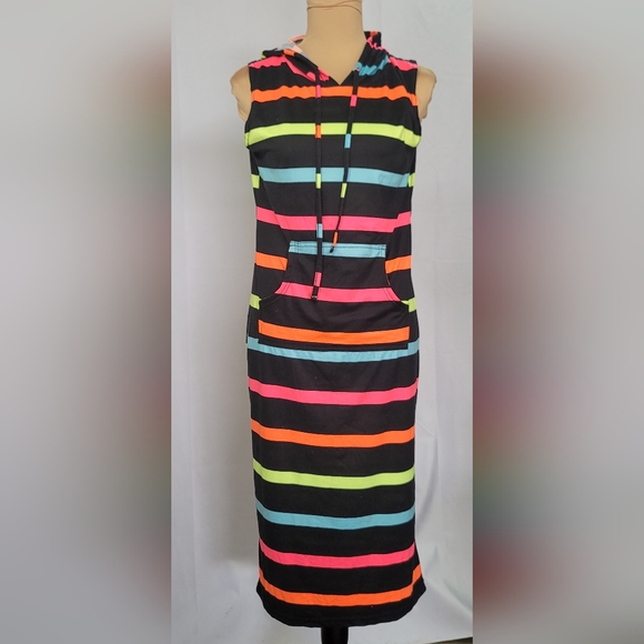Bobbie Brooks Tee Midi Dress Multi Colored Size M Sleeveless with Hoodie