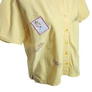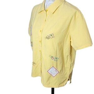 Bobbie Brooks Top Vacation Embroidery Yellow Cotton Short Sleeve Women's Large