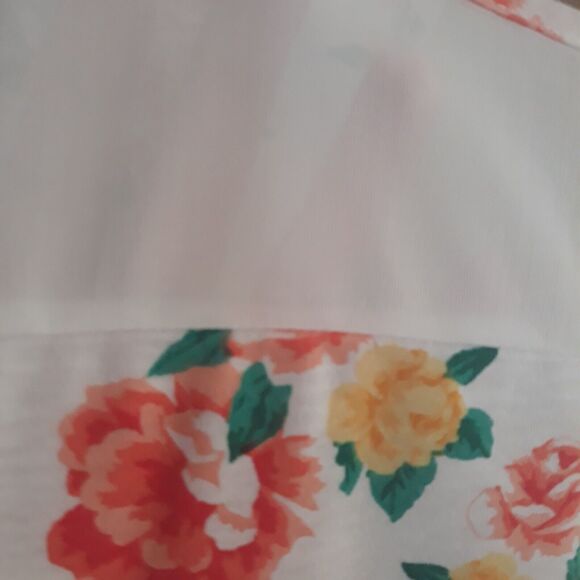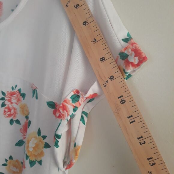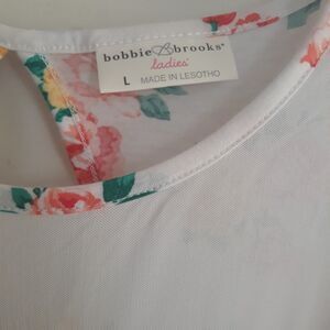 Bobbie Brooks Top Womens Large Pink Peach Floral Mesh White Front Keyhole Back