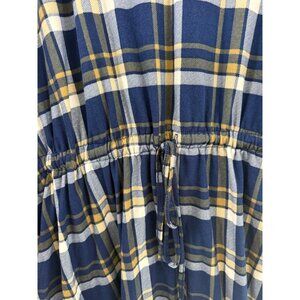 Bobbie Brooks Tunic/Dress Womens Plus Size 2X Blue Plaid V-Neck Drawstring Waist