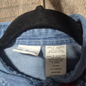 Bobbie Brooks Vintage 90s Denim Teddy Bear Fall Scene Embroidered Button Down Shirt