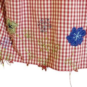 Bobbie Brooks Vintage Faux 2 Piece Red Top Size 14W Embroidered Beads Gingham Tw