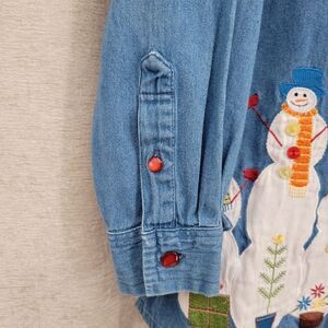 Bobbie Brooks Vintage Y2K Denim Button Down Snowman Christmas Women's Plus Size