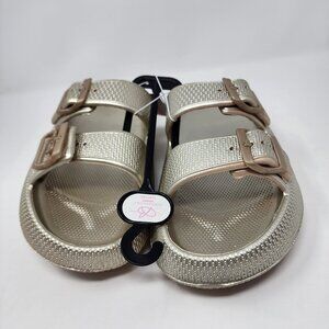 Bobbie Brooks Womens Large 9/10 Foam Sandals Metallic Silver Gold Pool Slide Ons