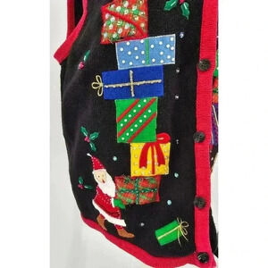 Bobbie Brooks Women's Size L Black Holiday Presents Sweater Vest