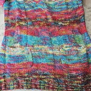 Bobbie Brooks Womens Sz L Colorful V-Neck Pockets Lagenlook Y2K Artsy Sweater