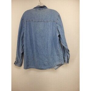 Bobbie Brooks Womens Top Blue Large Cotton Denim Fall Embroidered Long Sleeve