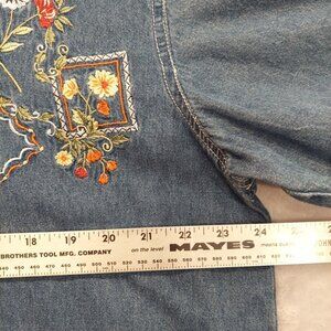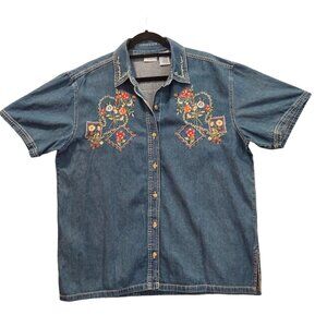 Bobbie Brooks blouse 14w Vintage Embroidered Flowers Garden Button Shirt Retro c