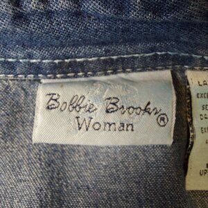 This Bobbie Brooks blouse, size 14, features a vintage embroidered floral pattern. Made of 100% cotton, it's comfortably casual with a touch of retro charm.