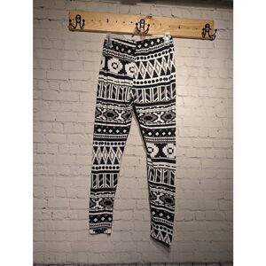 *Bobbie brooks stretchy black and white print leggings size large. Excellent pre-owned condition.