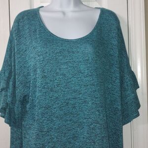 Bobbie Brooks plus size turquois black blend tunic ruffle sleeve Sz 3X