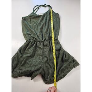 Bobbie Brooks size L large green lace lined short romper summer whimsigoth EUC