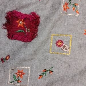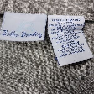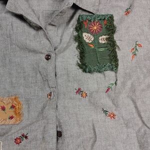 Bobbie Brooks women's large sized button down blouse with patchwork on the front. There is a 2 layered button down front