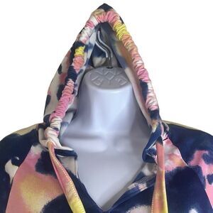 Bobbie Brooks Womens Size Medium Hooded Mini Dress Tie Dye Blue Pink NWOT