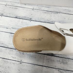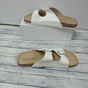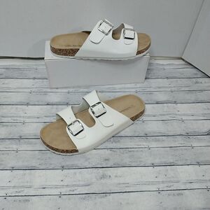 Bobbie Brooks White Leather Double Strap Cork Sandals Slides Women’s 9/10M