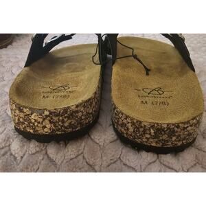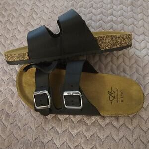 Bobbie brooks Black Leather Double Strap Cork Sandals Slides Women’s Size 7/8
