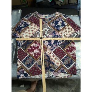 Bobbie Brooks Burgundy & Navy Paisley Patchwork 1/2 Length Sleeve Size 3X
