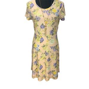 Bobbie Brooks Peach Floral Scoop Neck Print Size Small Dress With Necklace
