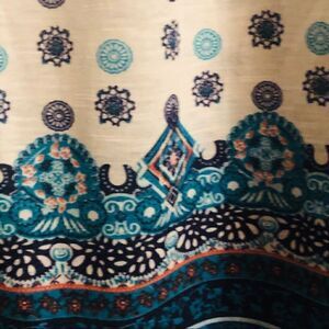 Like new condition. Ties at the sleeve, off the shoulder. 100% polyester.