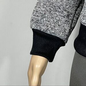 Bobbie Brooks gray sweater with colorful embroidered patches.