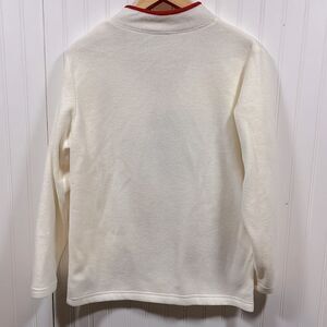 Bobbie Brooks fleece white cat sweater with slight v-neck